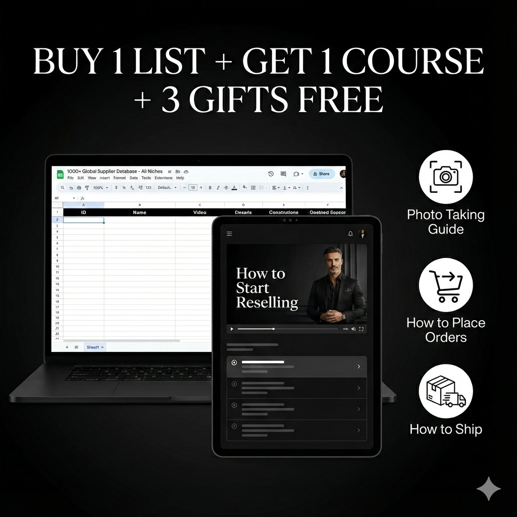 Once you purchase, you get instant access to the 1000+ Verified Supplier List and the full reselling course. These suppliers are already vetted for reliability, product demand, and reselling potential. Instead of guessing what to source, you follow a proven system that shows you where to buy, what to list, and how to sell